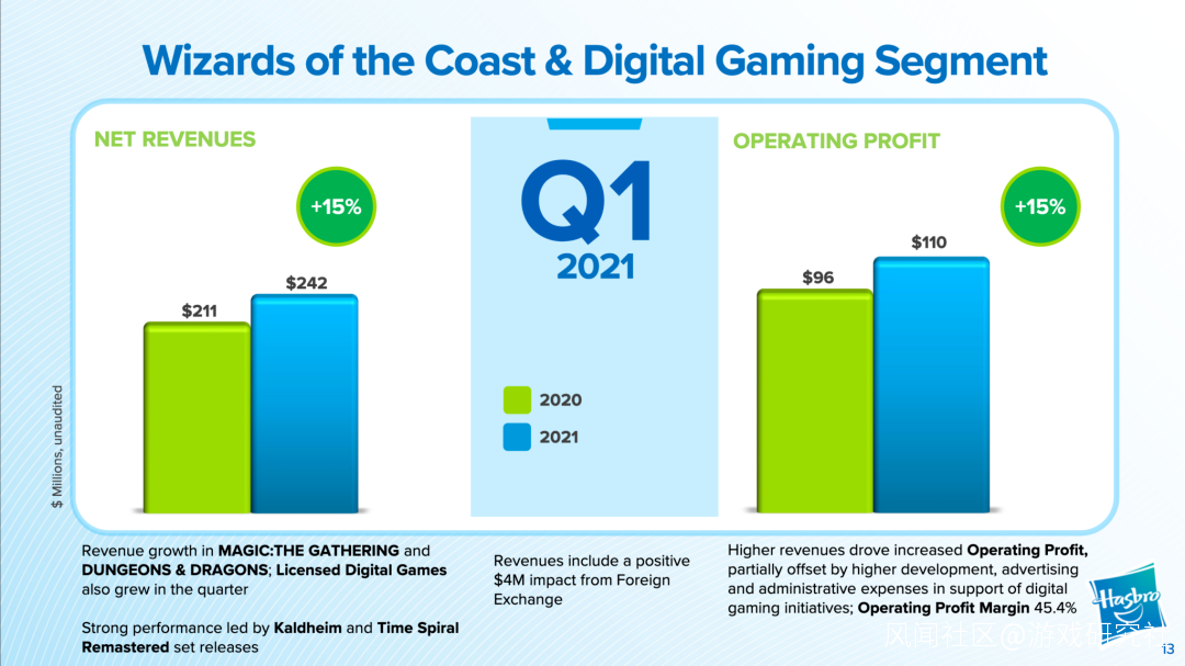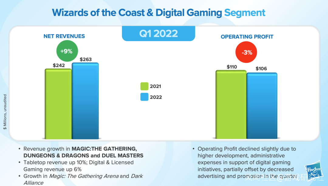 2022年第一季度,《萬智牌》的收入增長了7%,這得益於《神河:霓朝紀》擴張的大規模銷售。