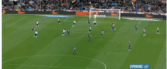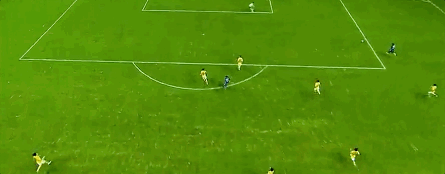 正是因為賽事直播缺乏一種既能深入賽場,同時又不干擾比賽進程的拍攝手段,像下圖的運動鳥瞰鏡頭,以及“一球成名”視角所呈現的這些極具縱深感和臨場感的運鏡效果,長期以來都是足球遊戲的專利。