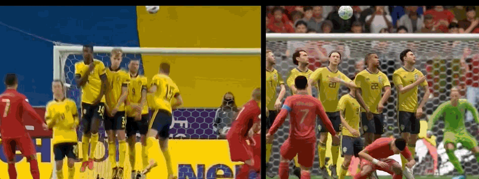 球迷和玩家共同的即視感,一方面緣於圖形細節的日益豐富,賦予了足球遊戲以假亂真的潛力。另一方面,則是數字化手段的運用,讓電視轉播畫面也擁有了原本只屬於遊戲的畫面質感和鏡頭語言。