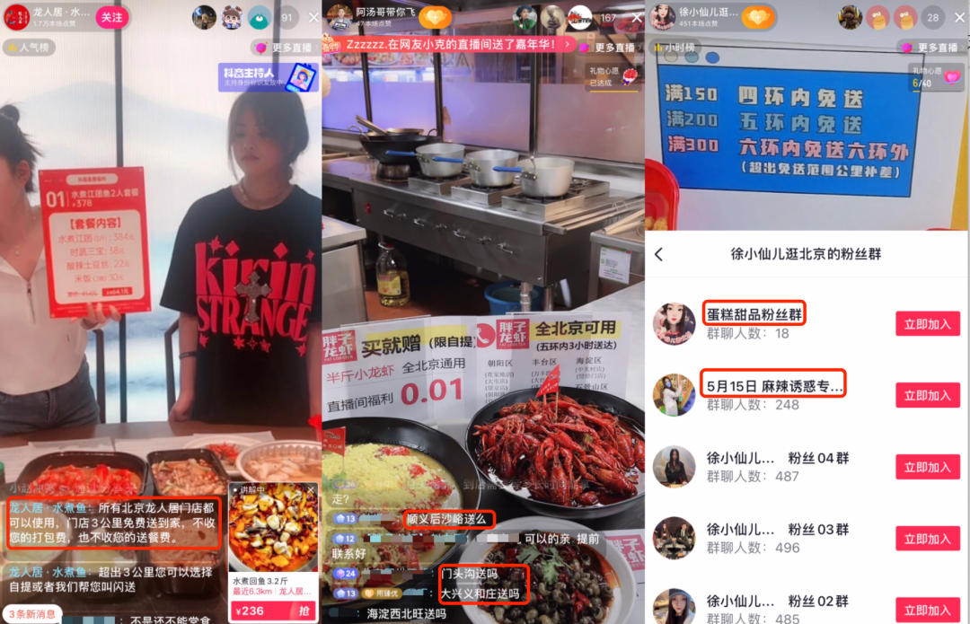 餐飲人的自救方式不只停留在線下。在“不能堂食,沒被封控”的地區,線下餐飲的“保衞戰”逐漸向線上轉移。餐飲商家紛紛基於小程序、企業微信社羣、微商城等私域流量渠道,以及外賣平台、團購、直播等增量流量渠道,進行自救。