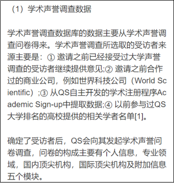 其中佔比高達40%的學術聲譽,這項的得分是怎麼計算的呢?