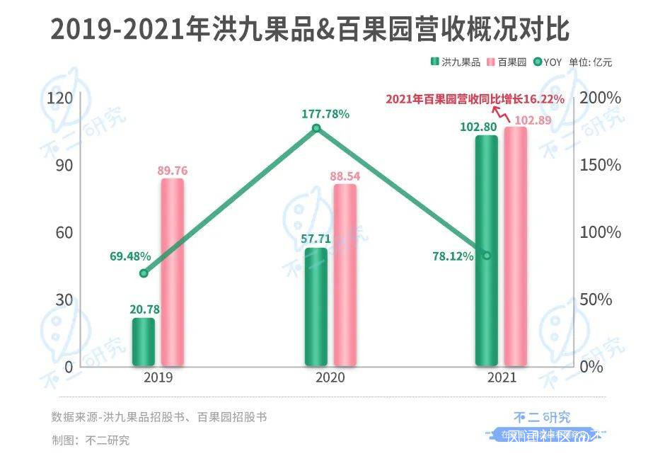 洪九果品營收三年間從20億元突破至百億。同時,據百果園招股書顯示,百果園2021年營收達102.89億元,同比增長16.22%,百果園也成功突破營收百億大關。