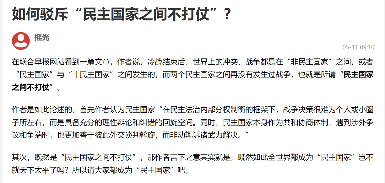 就“民主國家之前不打仗”問題,致一個缺乏常識,喜歡拉黑別人再宣佈勝利的朋友_風聞