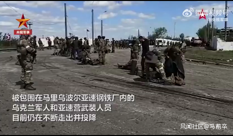 當地時間18日,俄羅斯國防部發布消息稱,被包圍在馬裏烏波爾亞速鋼鐵廠內的烏克蘭軍人和亞速營武裝人員目前仍在不斷走出投降。過去一晝夜共有694人投降,其中29人為傷員。從5月16日至今,投降的總人數已達到了959人,其中傷員80人。