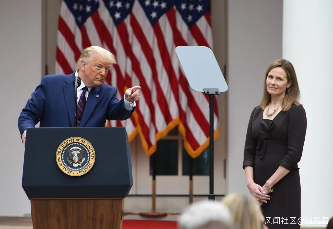 2020年金斯伯格大法官離世後,特朗普以27天的超快速度,提名保守派法官巴雷特接任。這是一名在大多數司法議題上與金斯伯格持相反態度的天主教徒,她在之前的法官生涯中曾兩次投票限制墮胎。