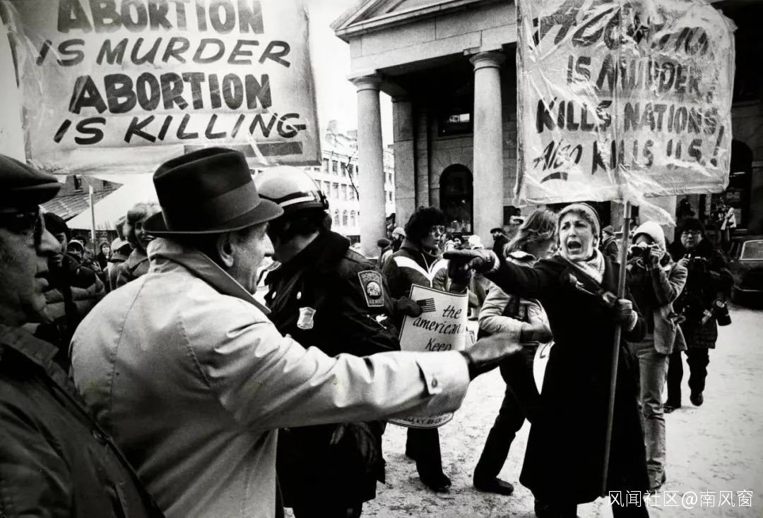 反墮胎倡導者試圖於1981年1月18日在波士頓的法納伊大廳參加支持墮胎權利的示威活動。圖 / vox