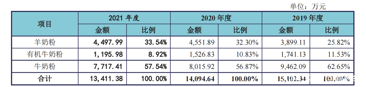 此前,美廬生物總經理周曉法曾公開表示,美廬生物將致力於打造中國羊奶第二品牌。但從其營收結構來看,羊奶粉佔比並不高。據招股書披露,美廬生物在2021年度羊奶粉比例僅為33.54%,貢獻美廬生物超一半營業收入的仍是牛奶粉業務。