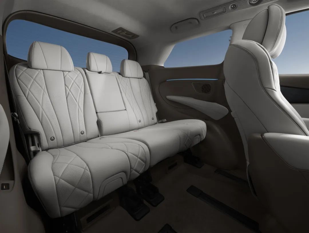 同時,針對 MPV 第三排的空間和舒適性等痛點,騰勢也做了很大改進。據瞭解,D9 對第三排進行了重新定義,座椅和頭枕都採用了打孔皮革的設計,擁有可放倒的扶手功能,這讓乘客擁有較好的舒適性,目的是「做到每個座位都豪華舒適,不區別對待」。