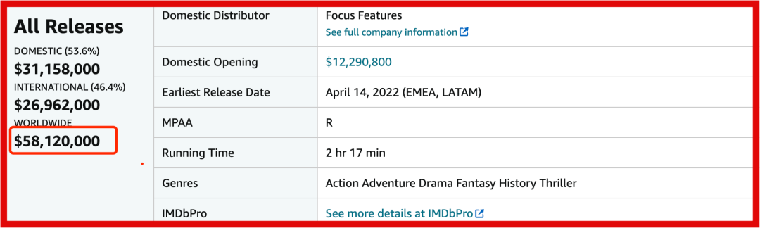 製作成本高達9000萬美元,算上宣發等環節,若想保本,票房必須達到2億美元。