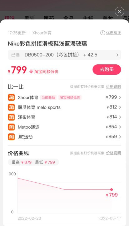 而選中相應商品後,即可查看該商品在淘寶中所有同款的最低價,並會生成一條價格曲線,供用户參考產品目前的價格走勢。不過,目前該功能僅支持在"有好價"頁面內推薦的商品,無法自行搜索商品。