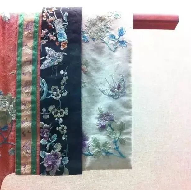 我們看到的五分袖的氅衣其實是被摺疊而成的,袖內有繡花裝飾,挽起袖子就能露出來。