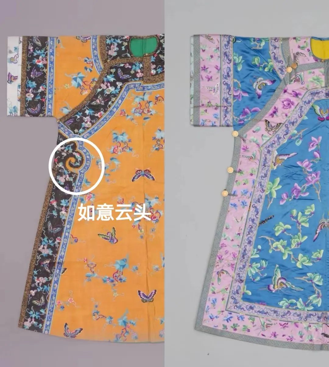 氅衣往往會開裾處裝飾如意雲頭,而襯衣是沒有的。