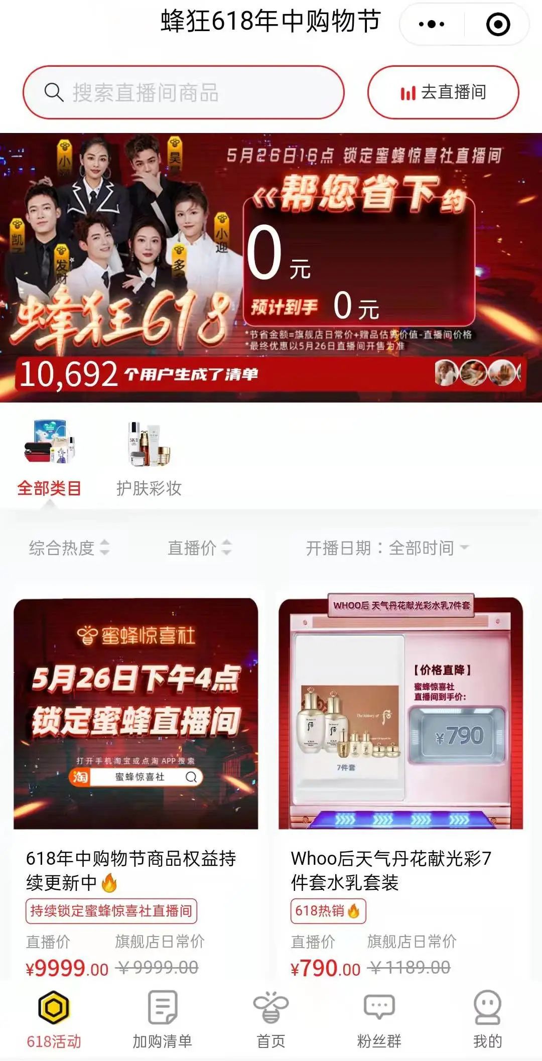 字母榜最新發現,繼李佳琦之後,薇婭團隊的新號蜜蜂驚喜社,剛剛上線了微信小程序,不過功能尚少,目前僅有直播間訂單換積分兑禮品、直播日曆等基礎功能,但這同樣是薇婭團隊繼續向私域挺進的信號。