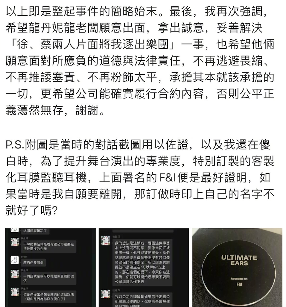 我看完後,只是覺得:當初的小朋友如今長大了,也覺得搞樂隊不是過家家,特別是已經職業化的樂隊,特別是有些落在字面上並且簽字蓋章的東西。這裏有興趣的朋友就自行閲讀吧,我就不再和大家做“閲讀分析”了。