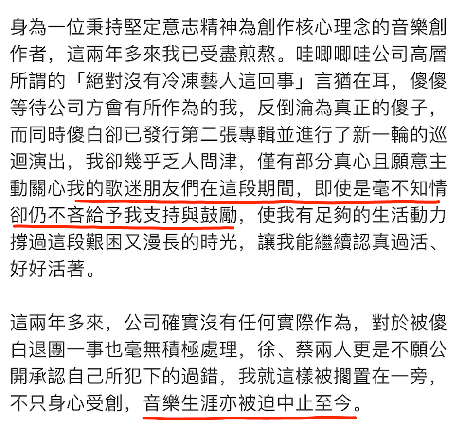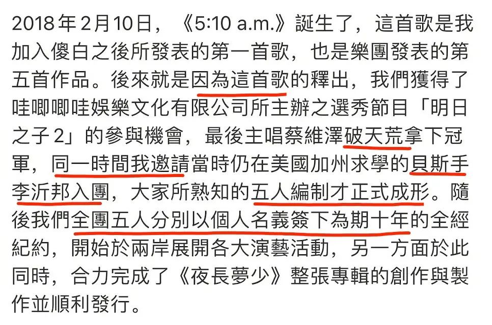 上圖劃線處有一個關鍵:樂隊不是隻有主唱被簽了,也不是整體簽約公司,而是各自以個人名義和公司簽了10年的經紀全約合同。