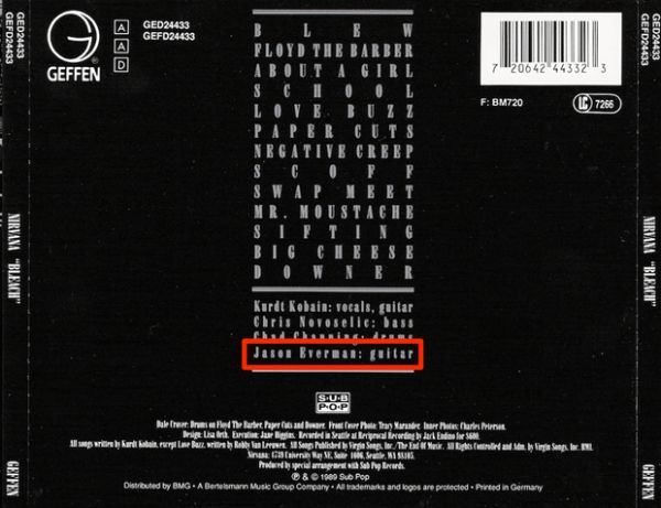 當時 Nirvana 已經錄製好了第一張專輯《Bleach》,但是科本他們仨實在是掏不出 606.17 美元的“鉅額”錄音費用。就在這個尷尬的時候, Jason 帶着 606.17 美元來了,吉他都沒彈一下的他,沒有經過面試就成為了樂隊第二吉他手。