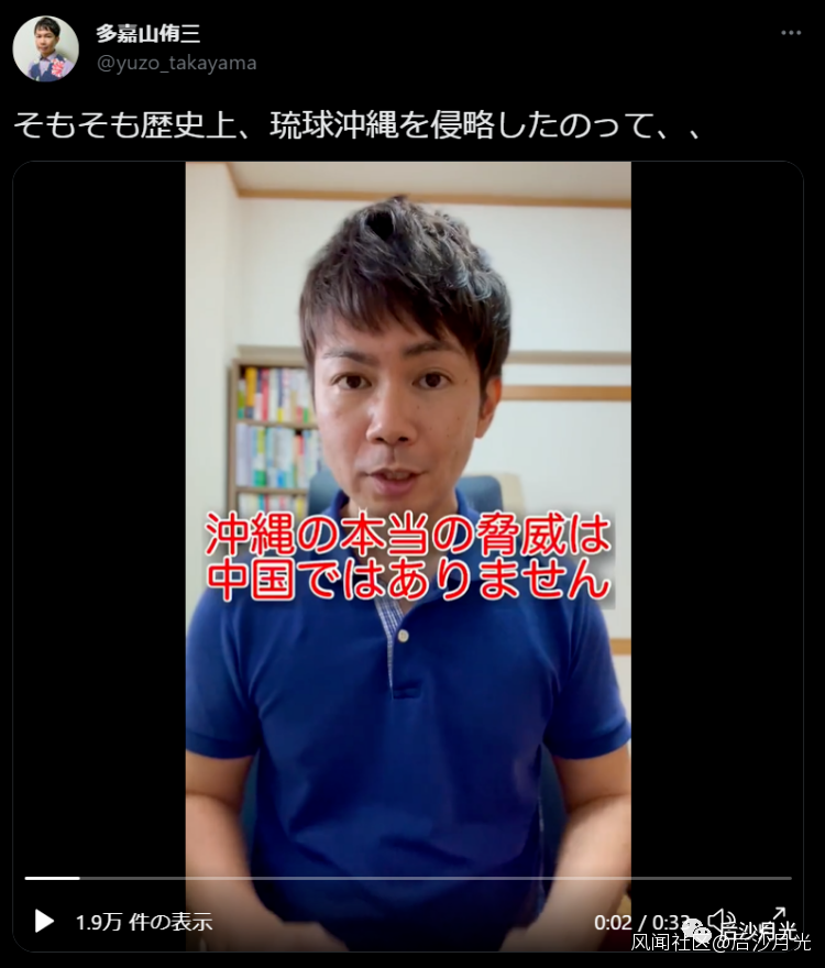 當地政治活動家、“網紅”多嘉山侑三之前在社交媒體上發佈了介紹沖繩真實歷史的視頻,引起了廣泛關注。