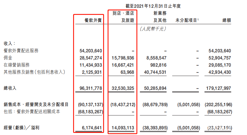 乍一看,外賣業務的總收入是到店酒旅的 3 倍。