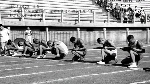他們在做什麼?這是1952年的解放軍運動會,這些士兵都是賽跑運動員,但有一條不正常的規則:必須在寫完字之後才能開始起跑。