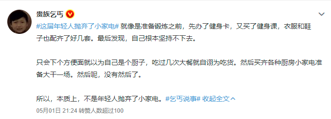 “現在年輕人大多是早出晚歸,回到家都累成狗了,只想躺平,吃飯靠手機點外賣,根本沒心思、沒精力去搗鼓小家電。”