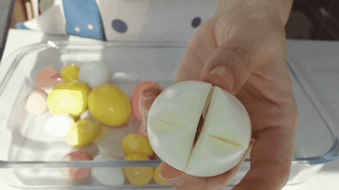 ① 染色水和雞蛋都要放涼之後再浸泡,不然容易變色;