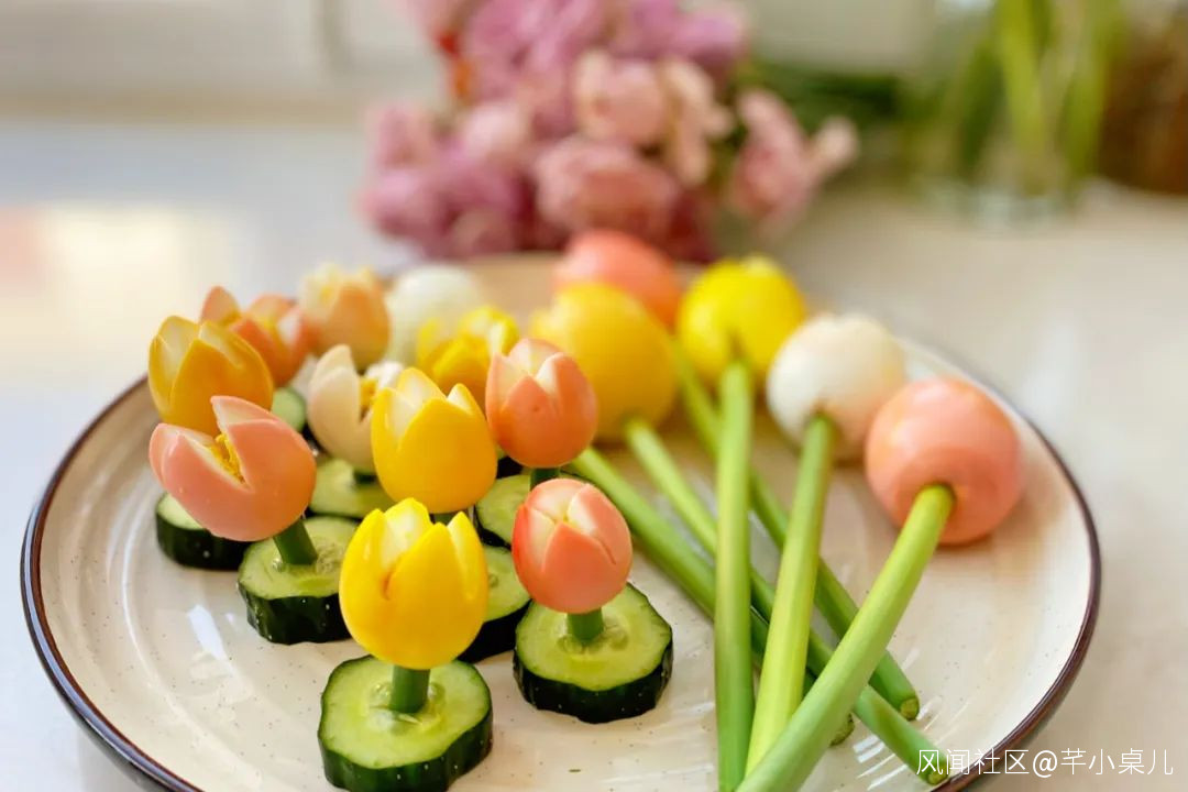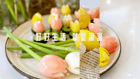其中,蒜薹可以換成芹菜,也很好看,還更容易操作;