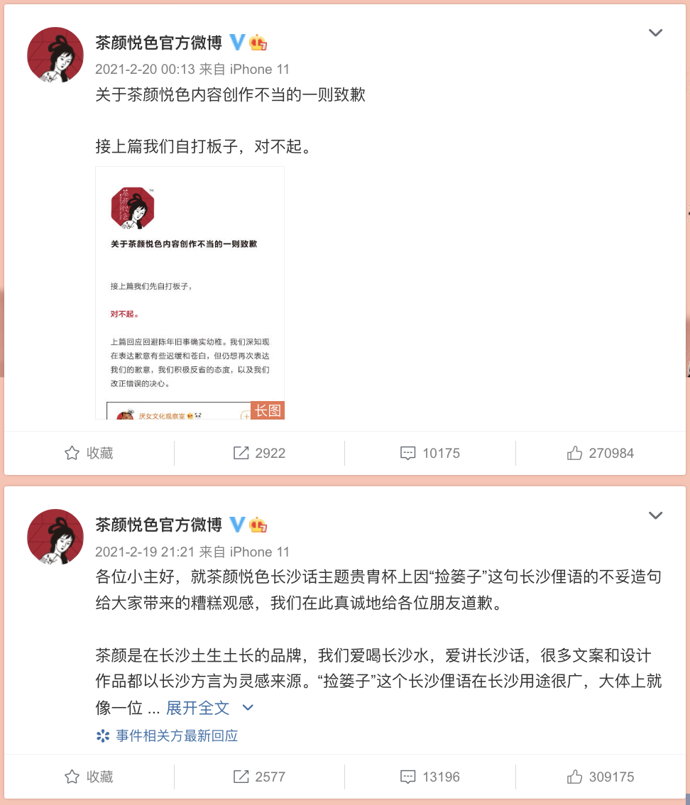 茶顏悦色因為在馬克杯上廣告詞“撿簍子”的道歉互動至今居高不下。