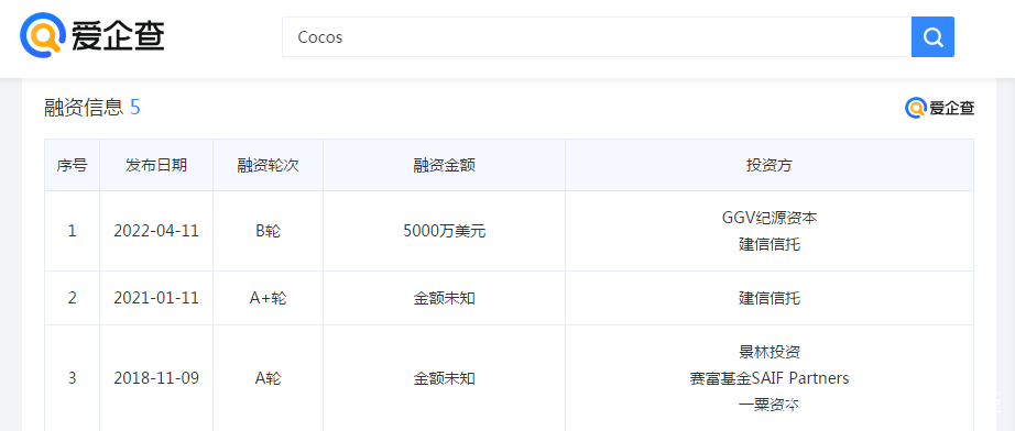 但Cocos也在持續增大投入,堅持將每年的利潤全部投入引擎功能研發、新場景拓展、生態建設上,努力追趕行業最領先的技術水平。據愛企查信息顯示,Cocos近期獲得一筆5000萬美元的投資,這將進一步提升Cocos的研發投入。
