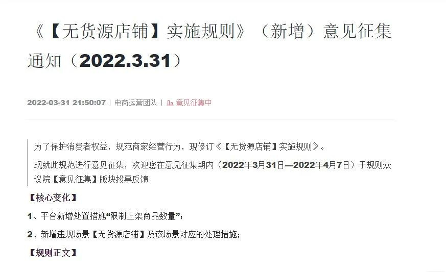而今,甚至不止是淘寶一家在行動,就連最年輕的綜合電商平台,抖音小店也在3月31發佈了新規定,稱要專門針對無貨源規則改革,根據系統識別、媒體報道、用户投訴及商家舉報等多維度對違規店鋪進行判定。