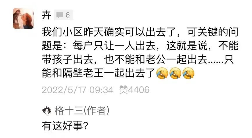 這話説的,我可就不愛聽了,你這叫何不食肉糜啊。對於我這種兩個多月沒出過小區的人來説,能出去三分鐘也是一種幸福呀。