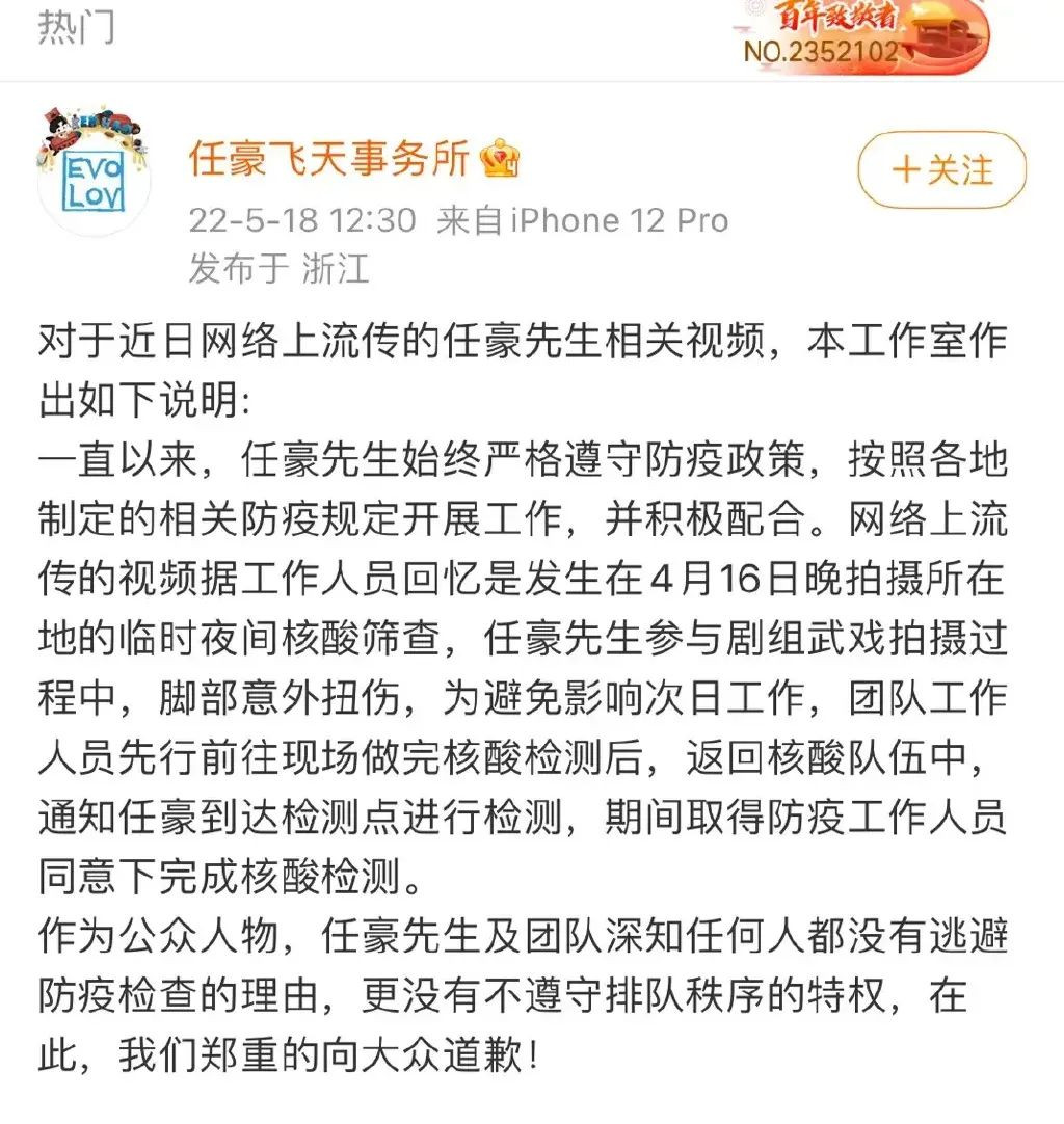 任豪做核酸插隊?!原來這位是娛樂圈塌房六邊形戰士_風聞