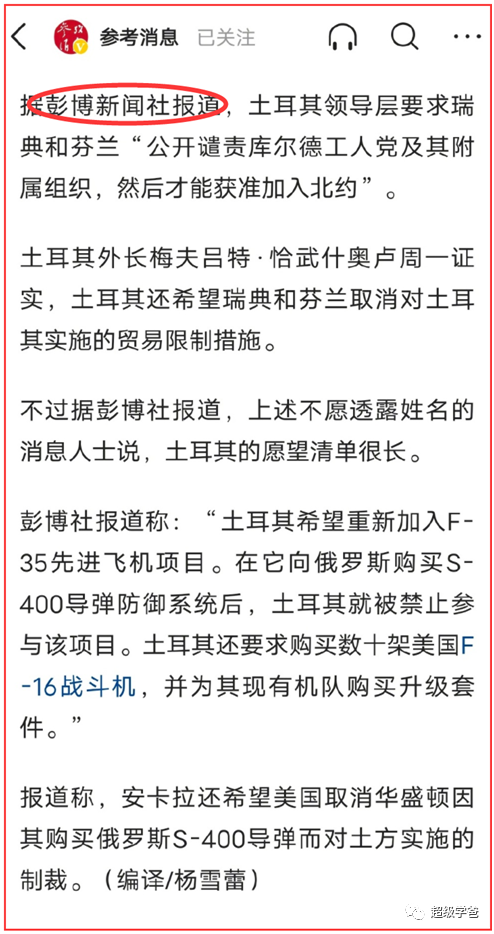 土耳其反對芬蘭和瑞典加入北約,並且給出了具體的理由。這説明了什麼?説明土耳其反對,並不是因為俄羅斯的原因,這就相當於公開要價。