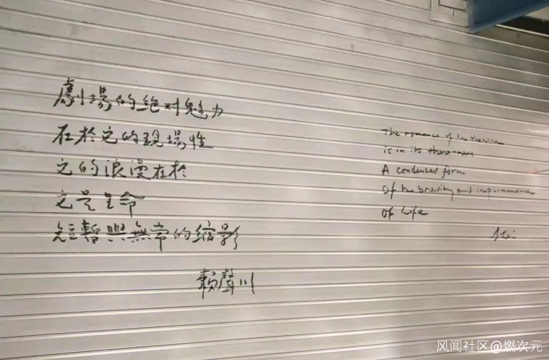 或許,正如賴聲川在上劇場大堂的牆面上寫下的那句話一般:“劇場的絕對魅力,在於它的現場性。它的浪漫在於,它是生命,短暫與無常的縮影。”