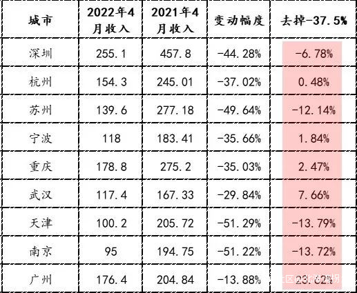 這個4月各家城市的真實收入比我們想象中的降幅還要厲害一些