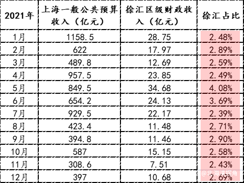 雖然未得全市數據,但是可以看看過往徐彙區財政收入/上海市一般預算收入得佔比是多少