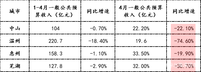 集中看各三四線城市的財政收入也在這個4月有所下滑