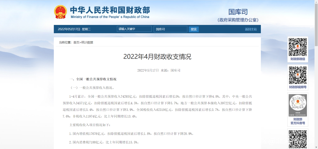 雖然官方還沒公佈數據,但可想而知受4月疫情影響,北京上海的財政收入也必然承受很大壓力