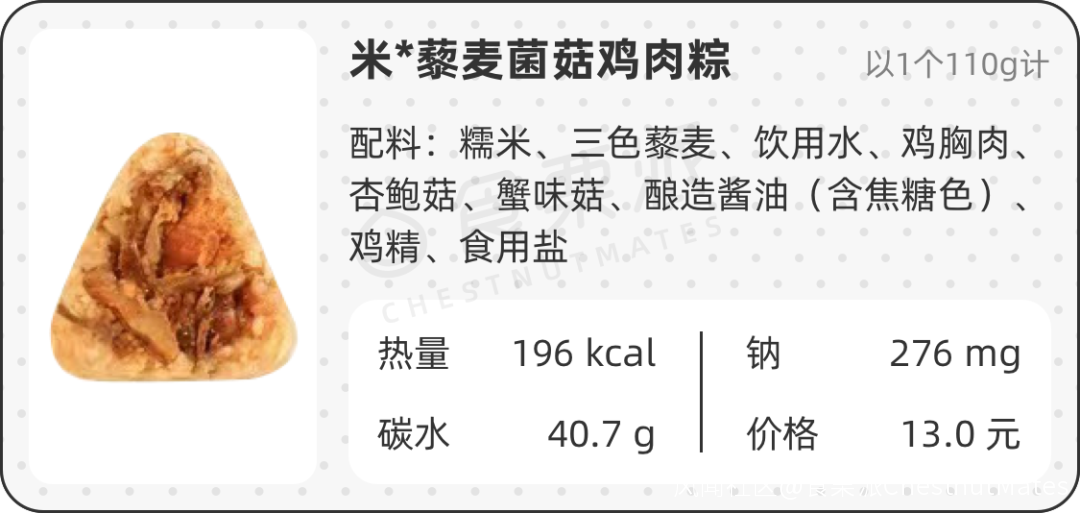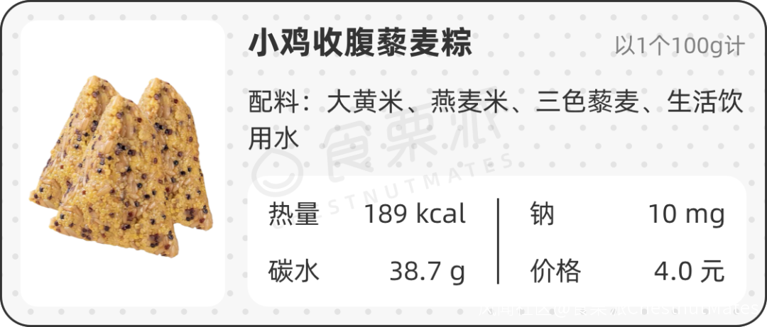▲想要控制血糖的朋友,可以購買純雜糧的粽子,本次測評一共有2款純雜糧粽:小雞收腹的藜麥粽和糙米粽。提醒一句:裏面用到的血糯米和大黃米是雜糧,也是糯性食物,GI值不低,糖友也別敞開了吃。