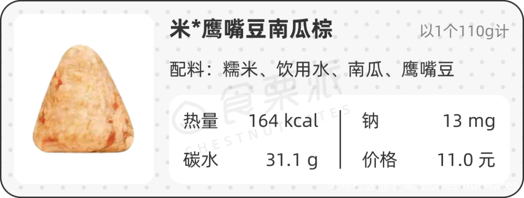 鷹嘴豆味道是不錯的,但加得很少;跟前兩款比起來,米量更多,口感也更軟糯;吃的時候能聞到南瓜的香氣,味道還算不錯。但@山楂覺得,作為雜糧粽,名字和實力不符。看名字最期待,但實際嘗過後最失望。