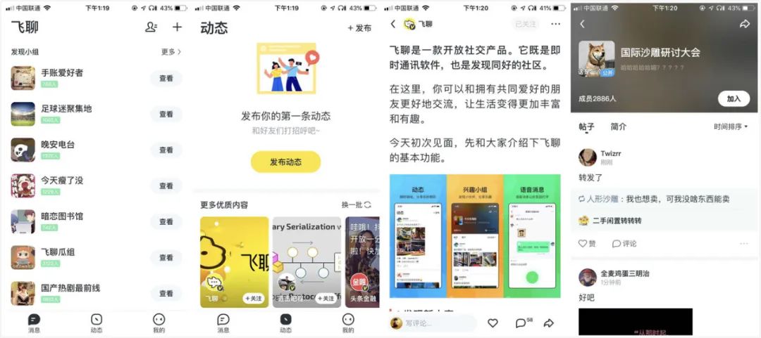 接着,字節迅速調整產品戰略,很快推出了與微信正面“死磕”的即時通訊產品飛聊,通過集成興趣社區來解決“社交關係鏈從何而來”的問題。然而,正如知乎用户所言“飛聊很像是為了‘聊’,硬做了個興趣圈子;而不是有了圈子,才慢慢聊得下去。”這種“反用户習慣”的社交機制,最終決定了飛聊折戟的命運。