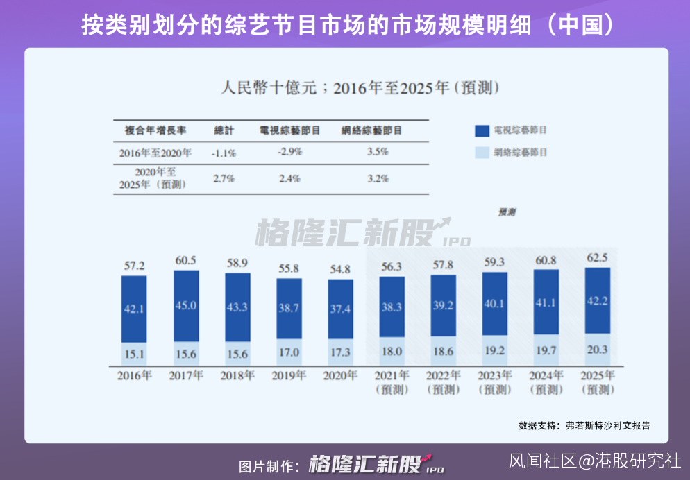 縱向對比整個綜藝節目市場,據弗若斯特沙利文報告顯示,按2020年收入計,星空華文是中國最大綜藝節目IP創造商及運營商,市場份額為2.0%。