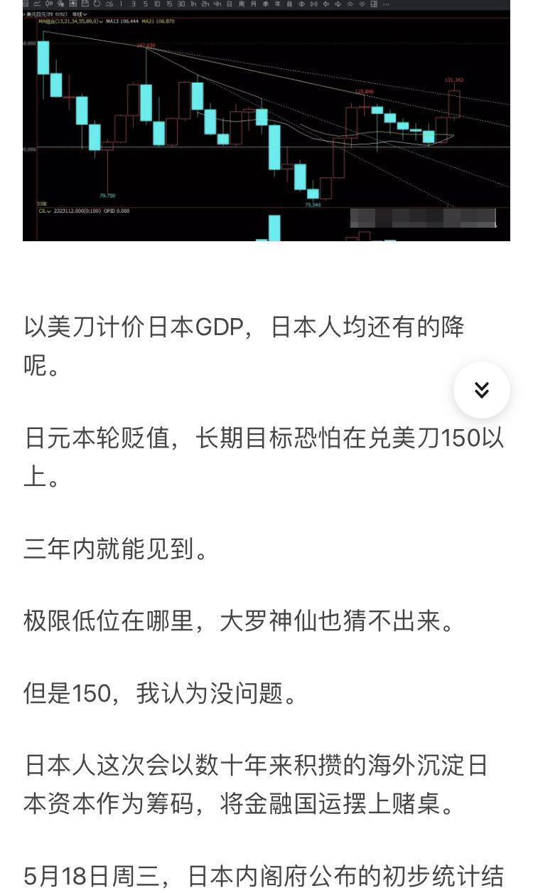 “日元本輪貶值,長期目標恐怕在兑美刀150以上。”