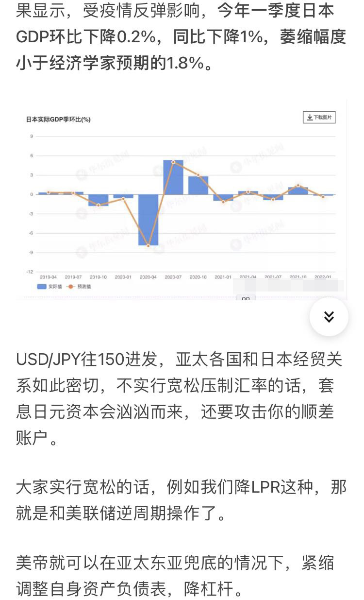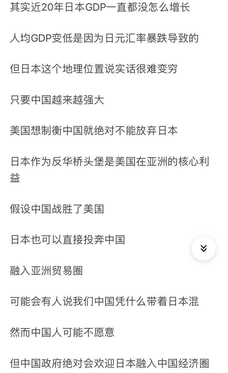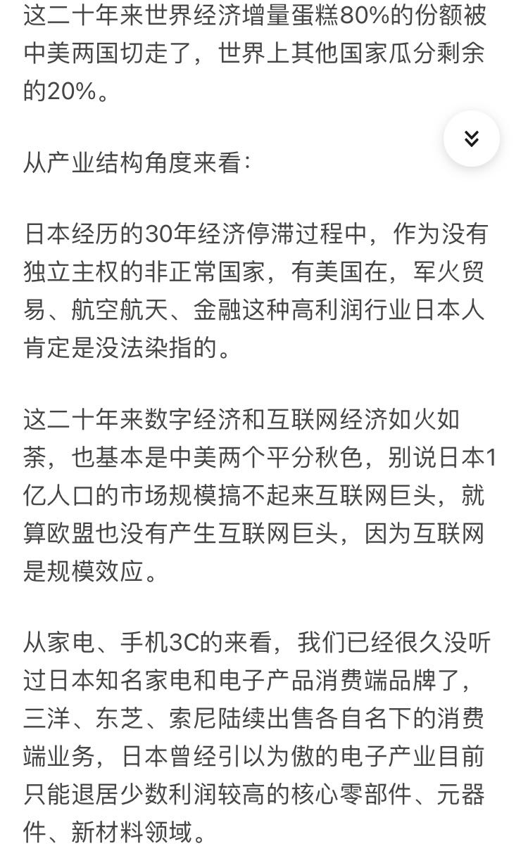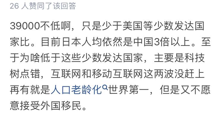 “其實近20年日本GDP一直都沒怎麼增長,人均GDP變低是因為日元匯率暴跌導致的。”