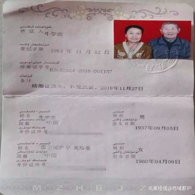 (@牛學忠 男 漢族,圖爾妮薩罕·奧斯曼 女 維吾爾族)