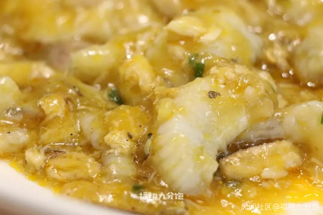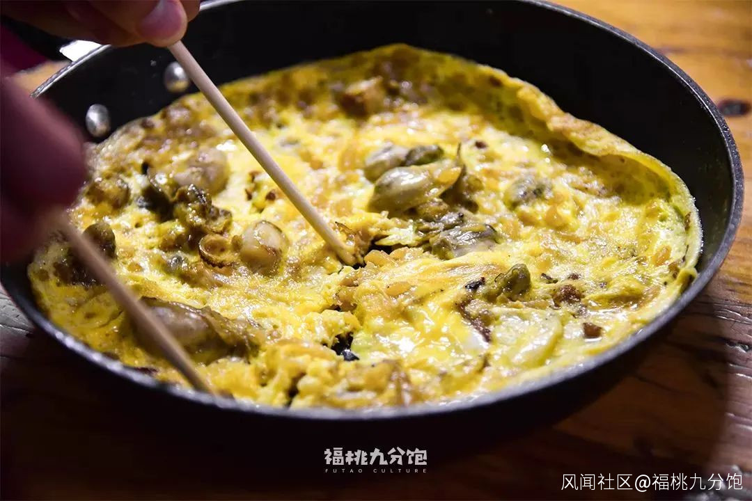 連鍋上的海鮮煎蛋,蠔肉和扇貝柱裹在鬆軟的雞蛋裏,鮮香軟滑。