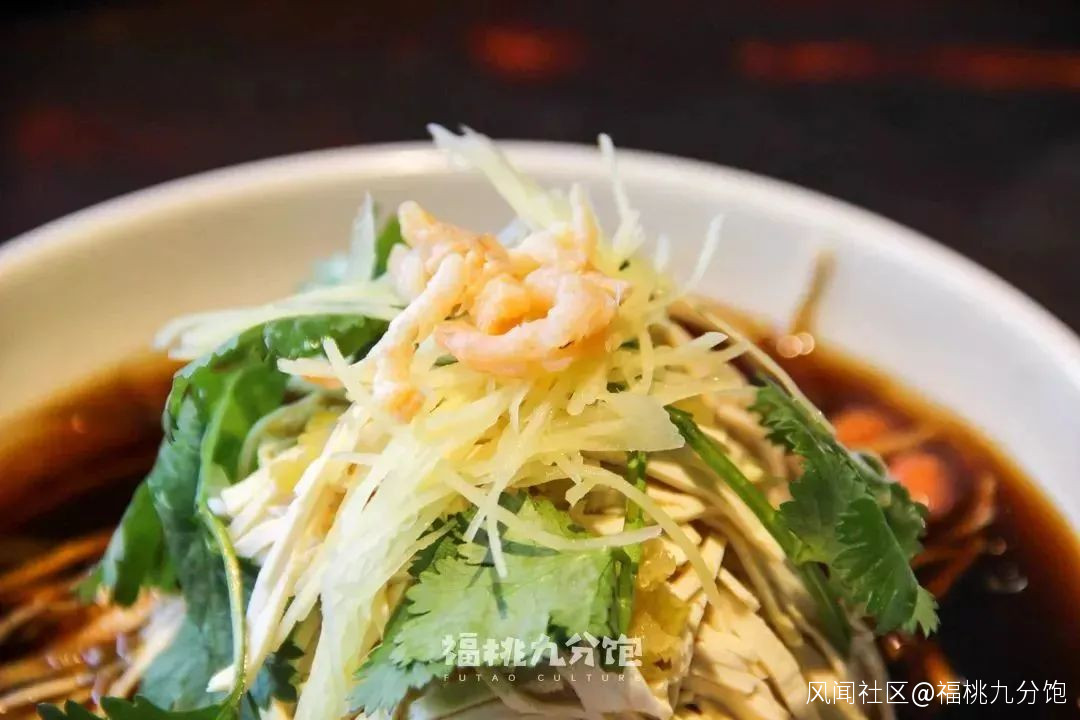 最先上桌的是乾絲,端上後立刻用筷子拌一拌,將麻油的香和醬油的鮮都拌進去,吃起來綿軟柔韌,滋味鮮甜。