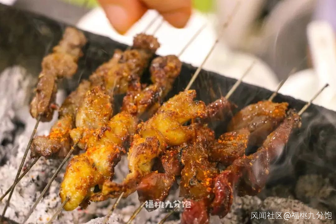 在這裏吃燒烤很有趣,每桌都會配一個碳爐,烤串師傅把串烤到七八分熟,等到想吃的時候自己在碳爐上翻轉兩圈,看自己口味調味。