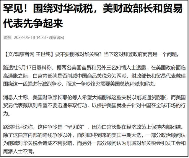 而耶倫則是基於高通脹的壓力,要求拜登迅速取消這些關税,而不是拖到7月份。