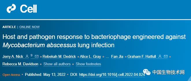 2022年5月13日,發表在**《Cell》**上的一項研究中,噬菌體治療再次拯救了生命。