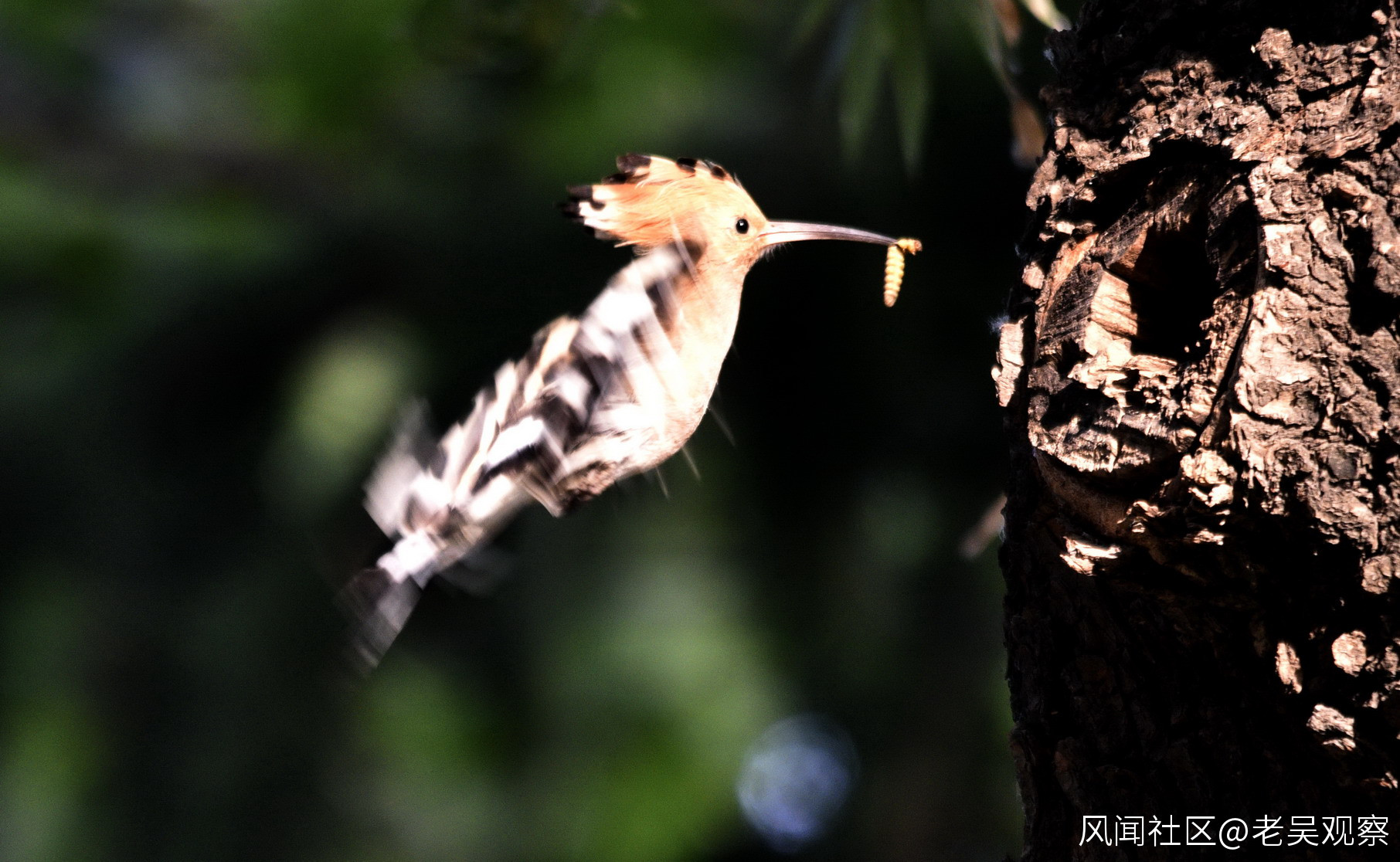 幾天前,一位攝友老哥給我發來微信提醒,古樹苑戴勝鳥正在育雛,如果不抓緊時間去拍,過幾天幼鳥出樹洞就拍不成了,看完微信,就想立刻背上相機去拍,倒黴住在封控區,不要説去拍鳥,連小區大門都出不了。心急火燎的沒辦法。